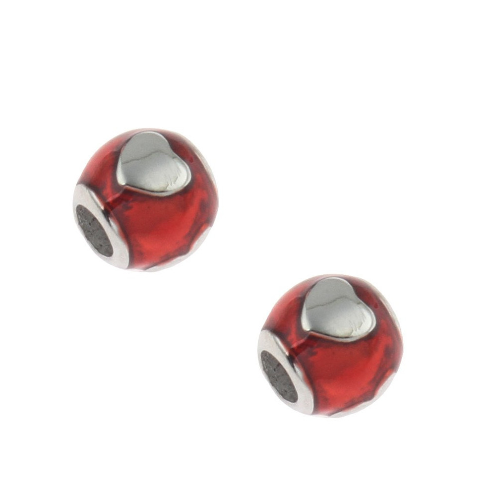 Bead with hearts red or blue enamel surgical steel