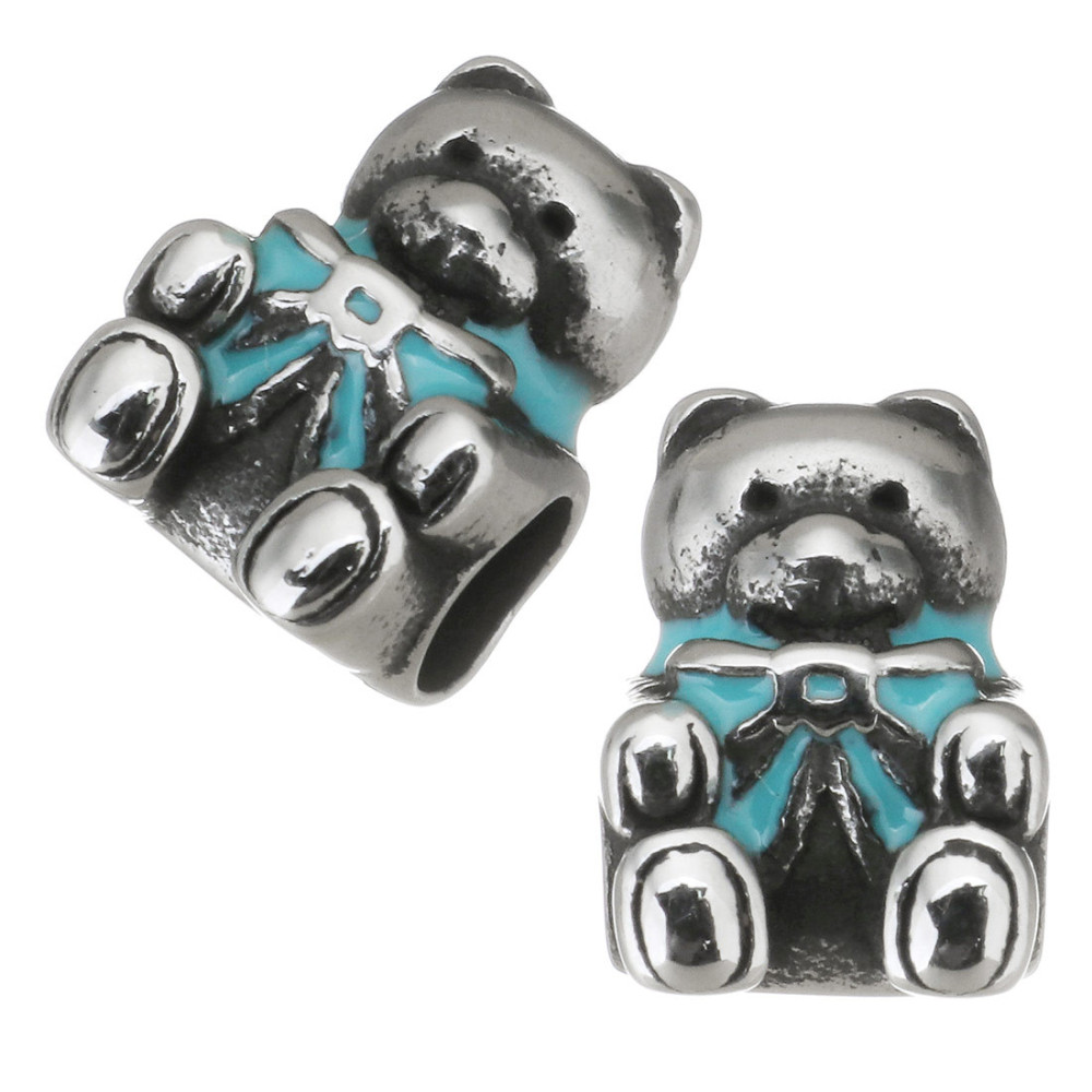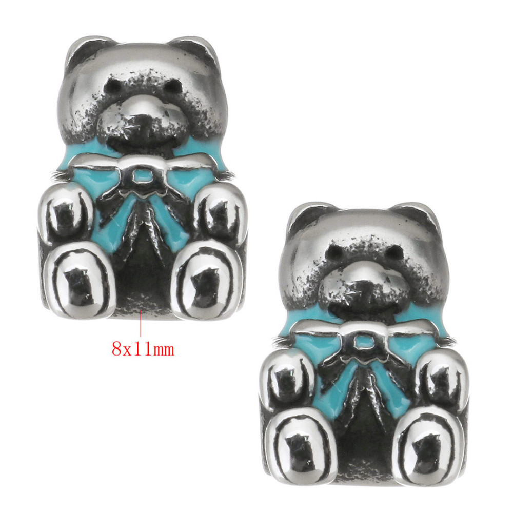 Paw-shaped bead decorated with rhinestones made of surgical steel