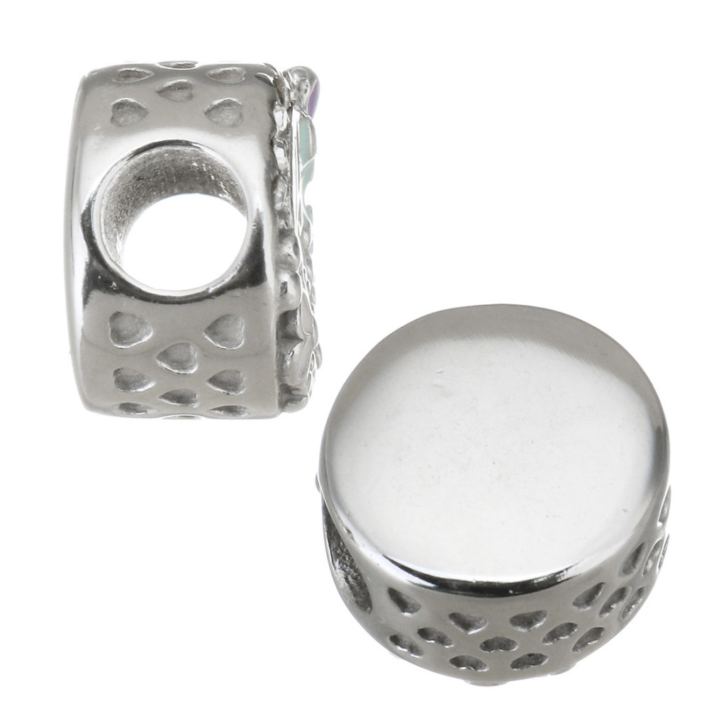 Bead with colored enamel and silver heart in the middle