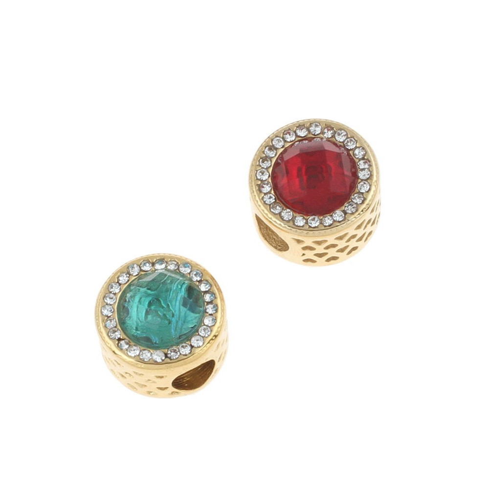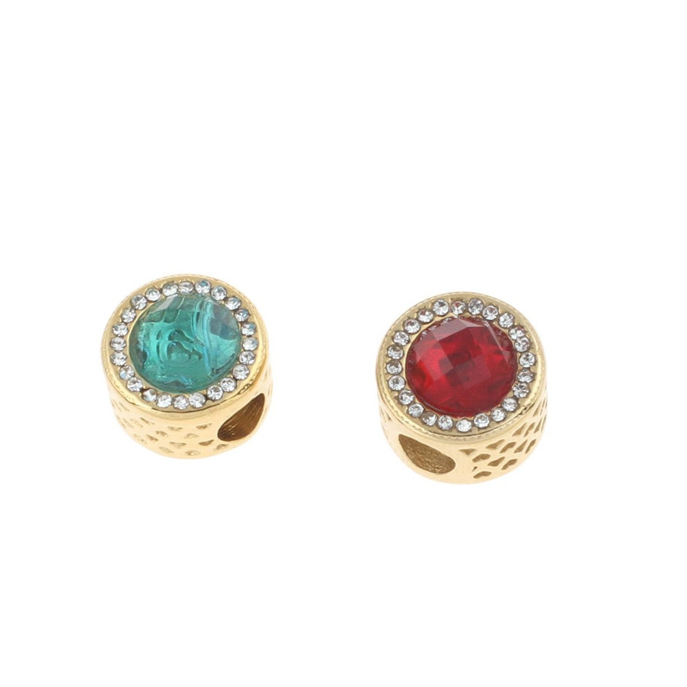 Bead in gold plating with colored surgical steel stones