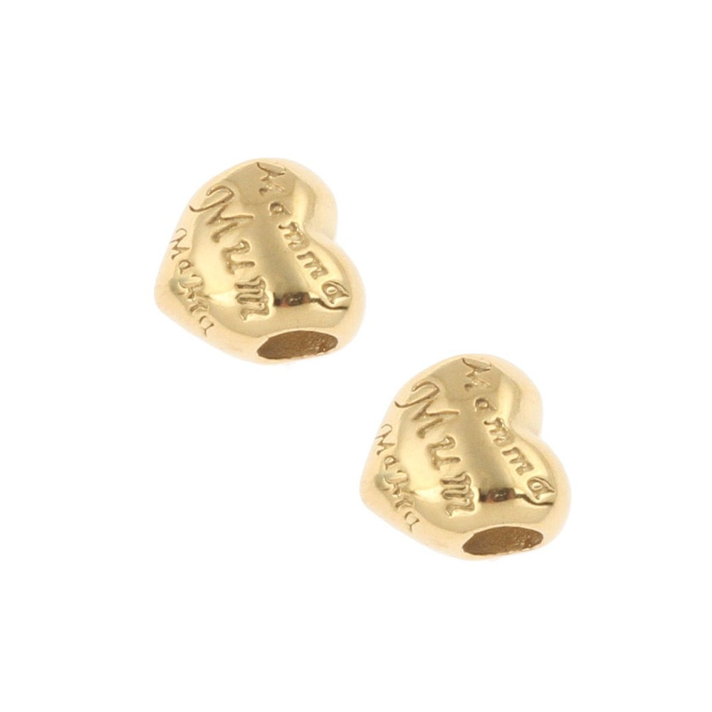 Bead heart with lettering MUM in gold galvanized surgical steel