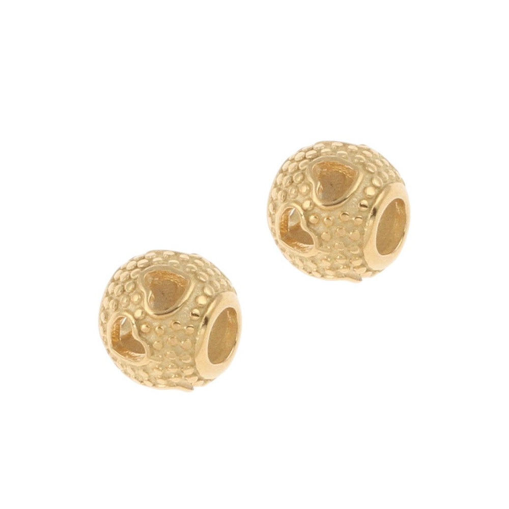 Bead heart decorated with hearts and lips gold galvanized surgical steel