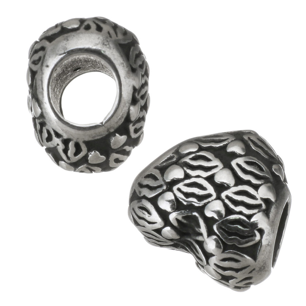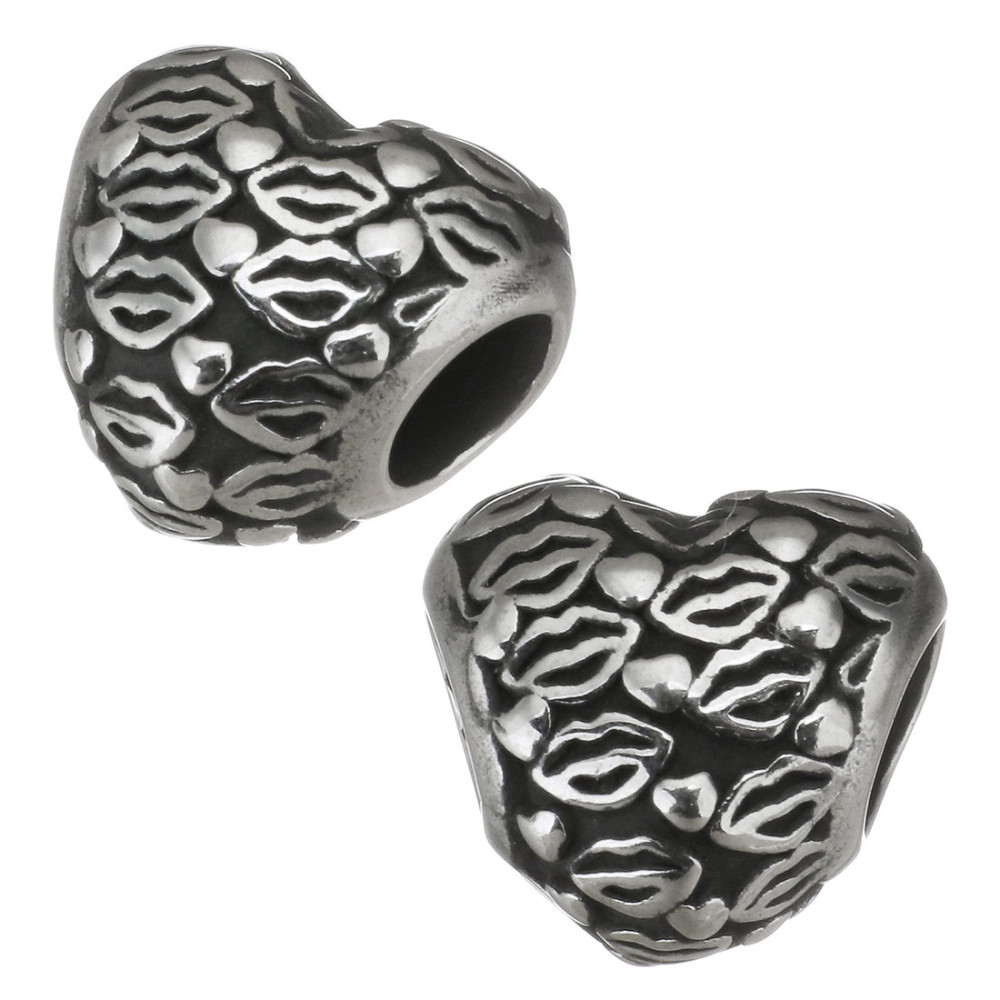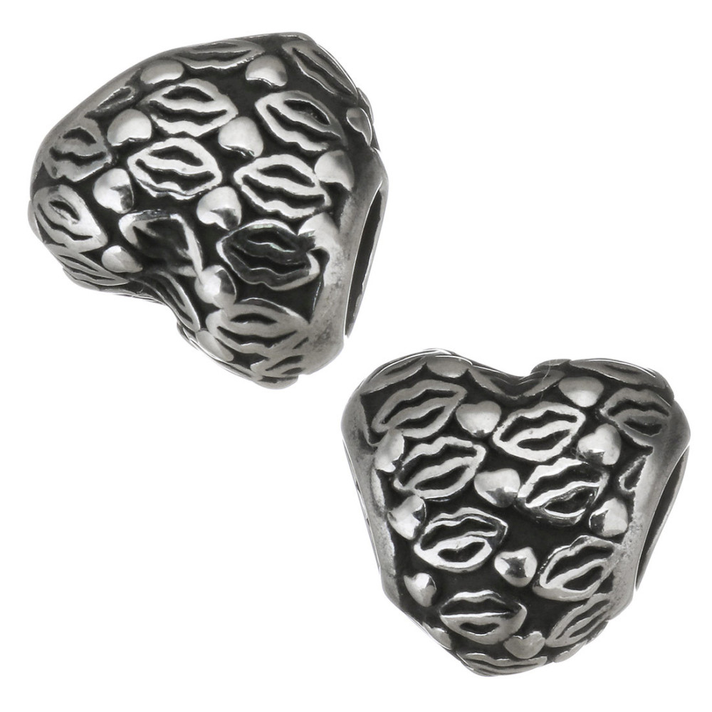 Bead heart decorated with hearts and lips gold galvanized surgical steel