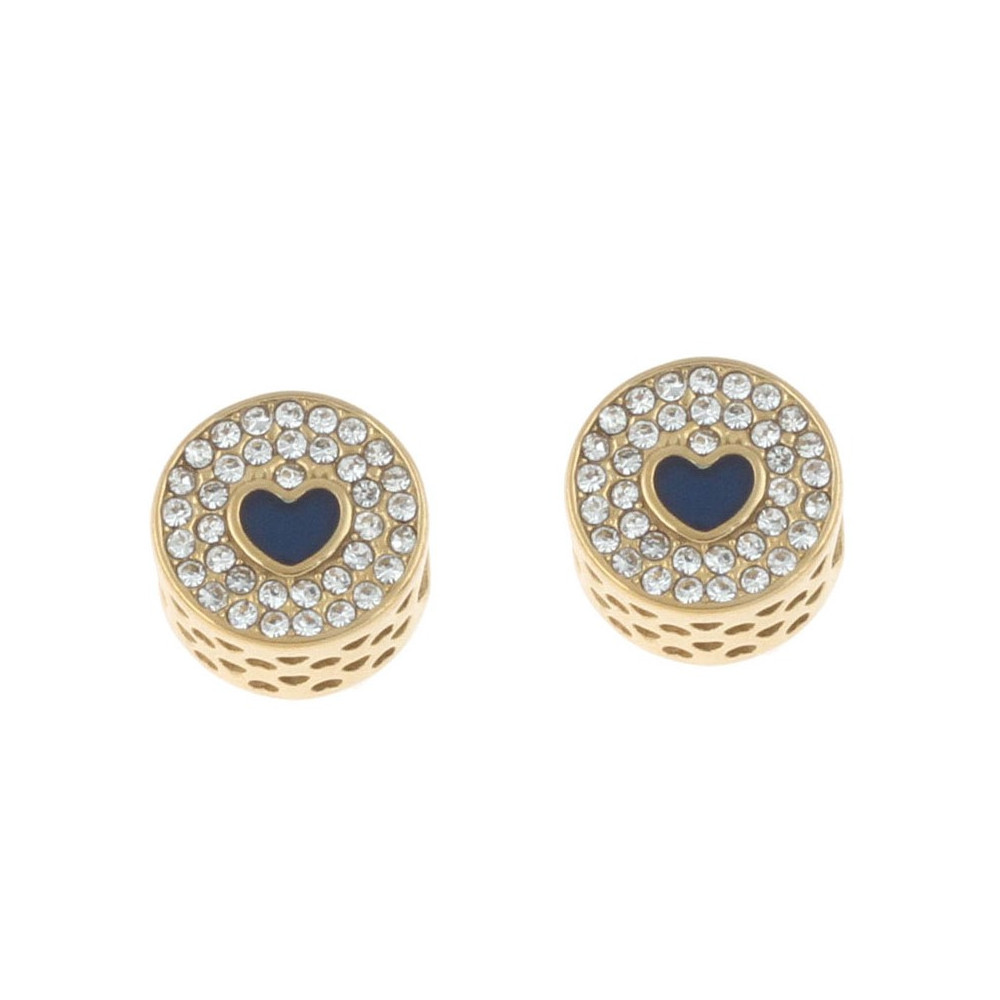 Bead decorated with heart and chatons gold galvanized surgical steel