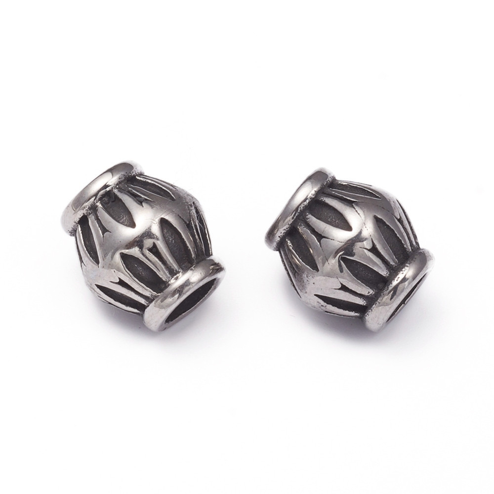 Barrel-shaped bead of surgical steel