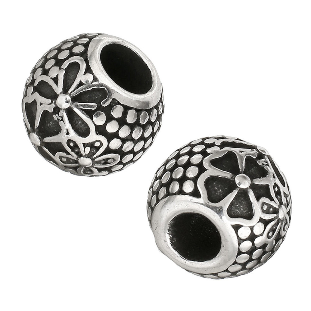 Bead with a flower antique silver patina surgical steel