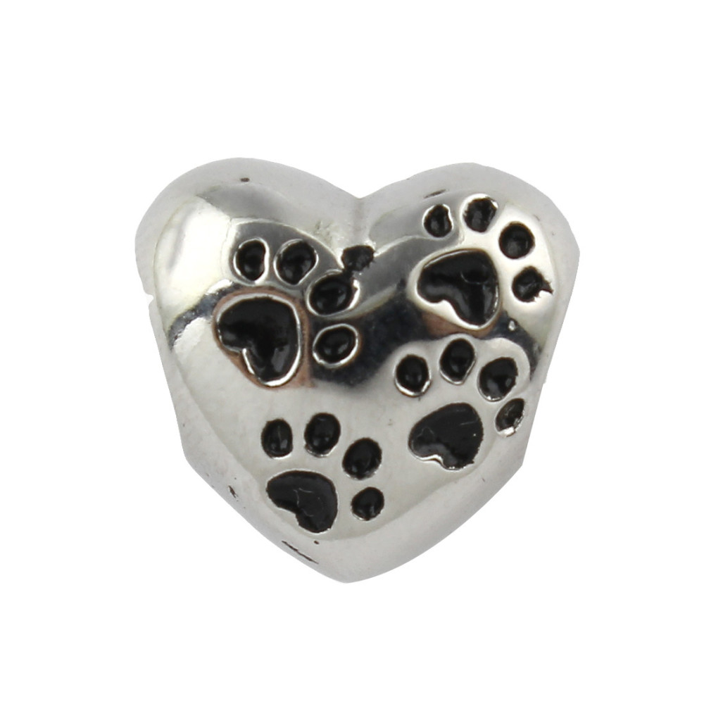 Paw-shaped bead decorated with rhinestones made of surgical steel