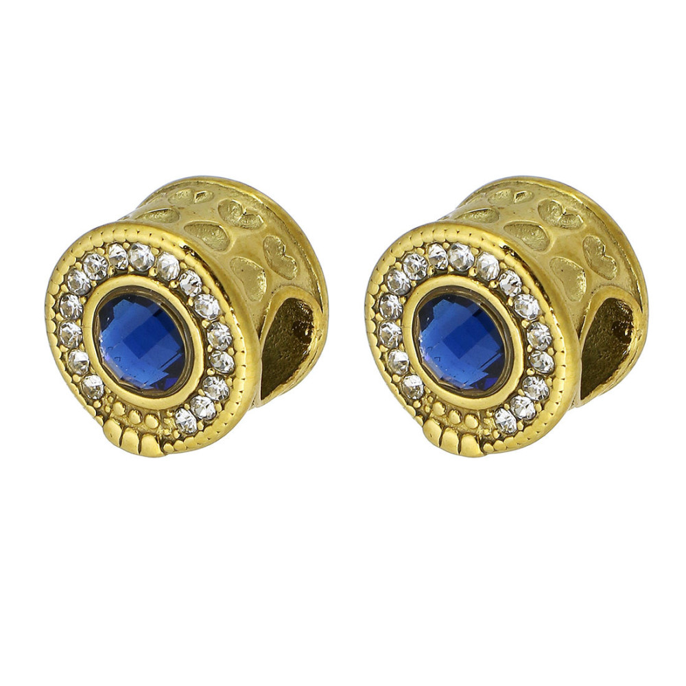 Bead WITH BLUE STONE AND CHATONS surgical steel two color variants