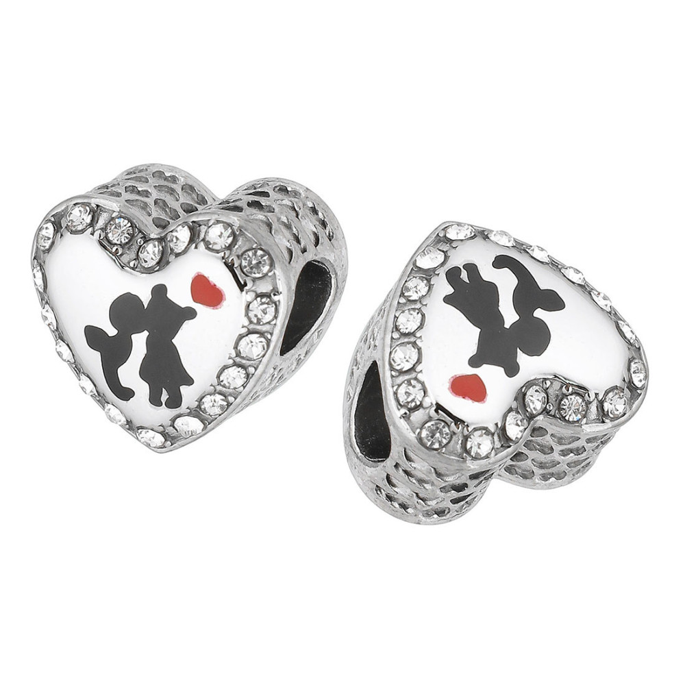 Bead heart with ornaments and chaton 4 color combination surgical steel