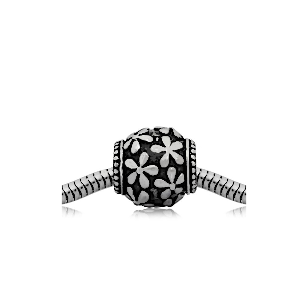 Bead with pink flower of surgical steel