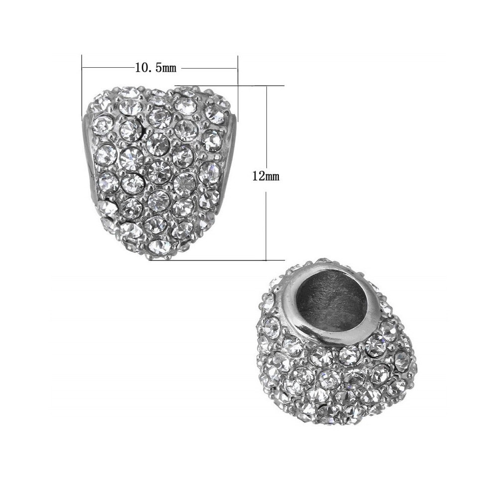 Bead with a large drawstring rhinestone heart in gold plating or without surface treatment