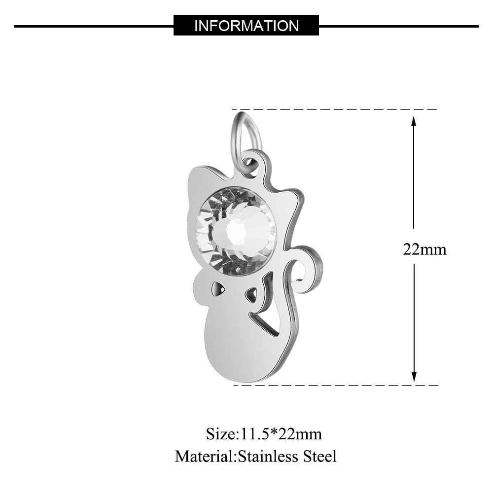 Cat pendant with chaton rose color Crystal in two color combinations surgical steel
