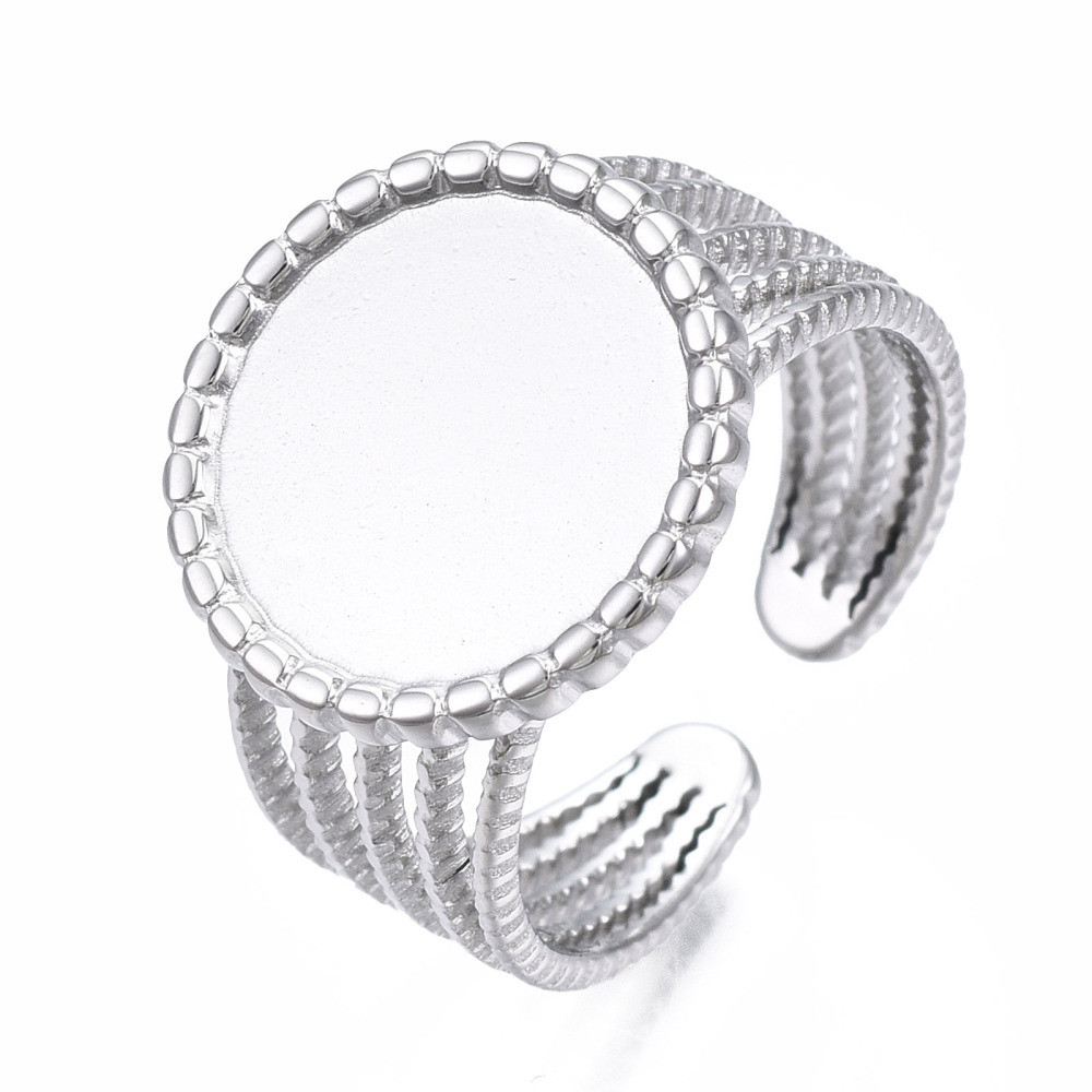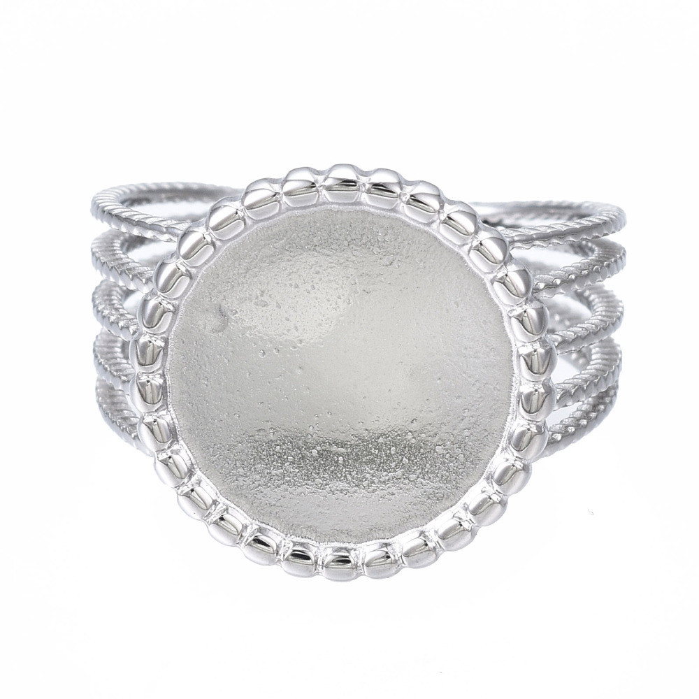 Adjustable ring with cup for gluing the cabochon, surgical steel
