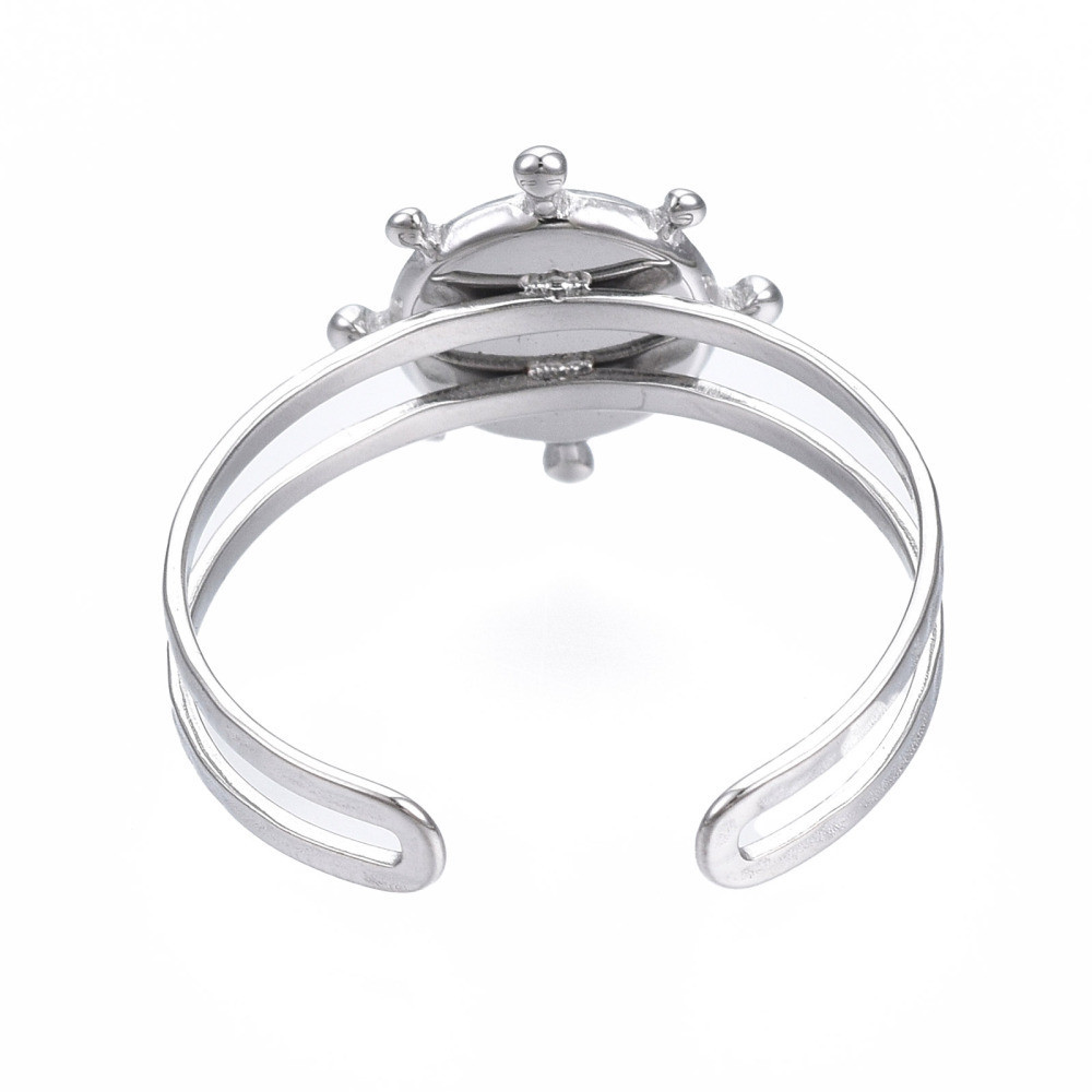 Adjustable ring with cup for gluing the cabochon, surgical steel