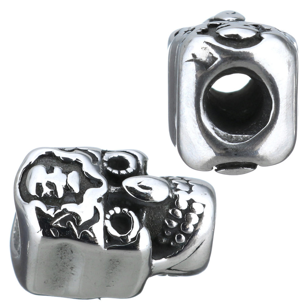 Bead with a small die-cut carved ornament in the shape of a helm of surgical steel