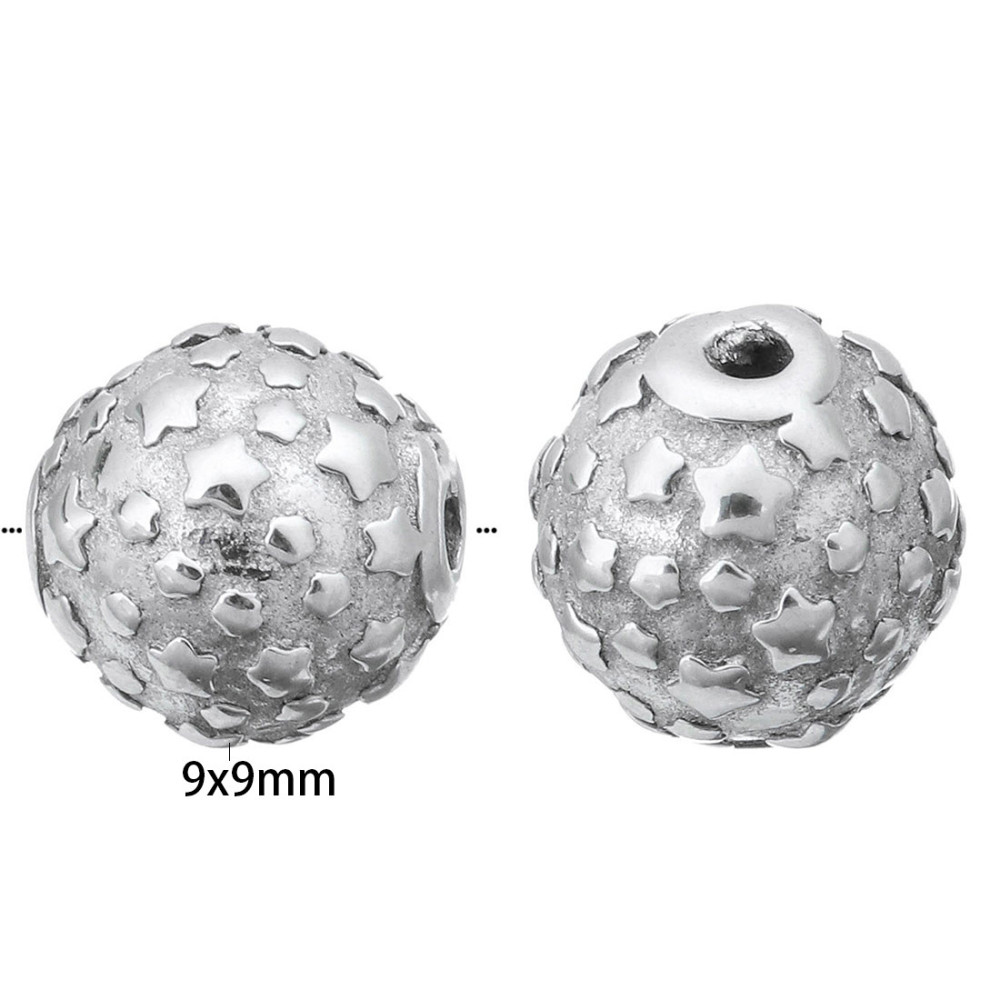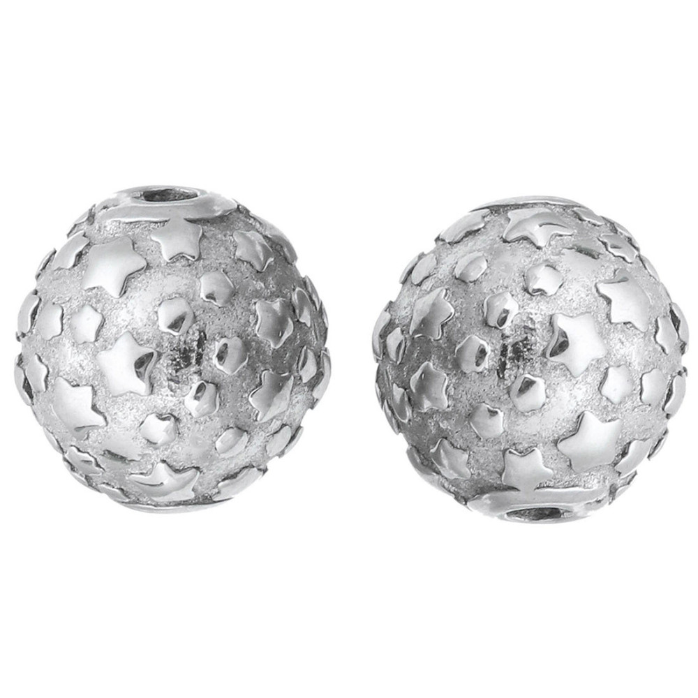 Bead with stars surgical steel silver patina