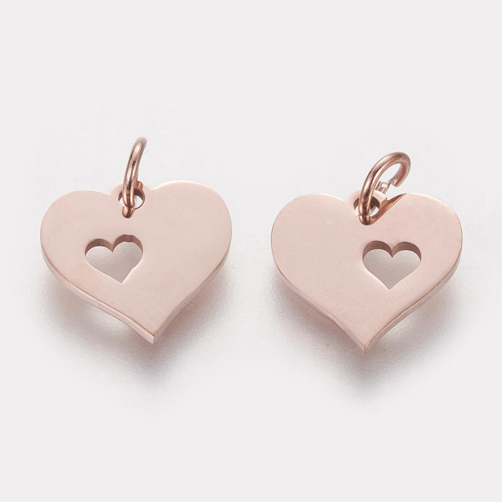 Heart pendant with a cut out heart made of surgical steel three color variants