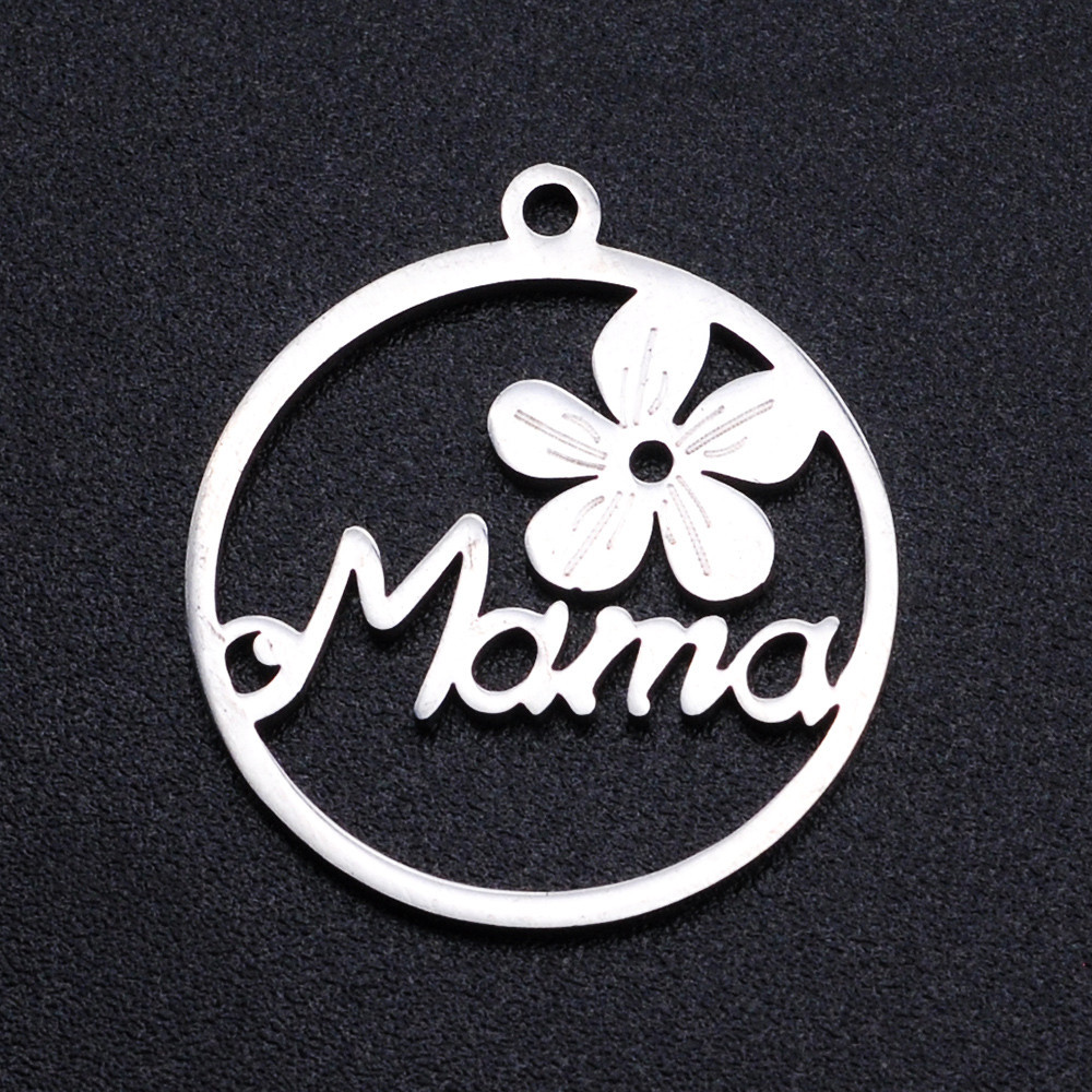Mom pendant with a surgical steel flower