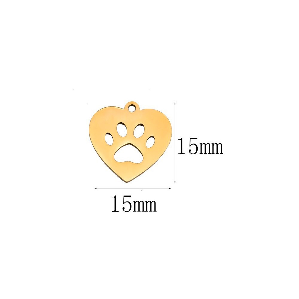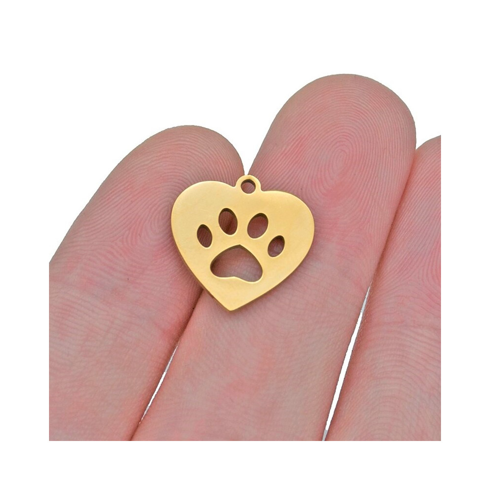 Heart-shaped pendant with a paw made of surgical steel two color combinations
