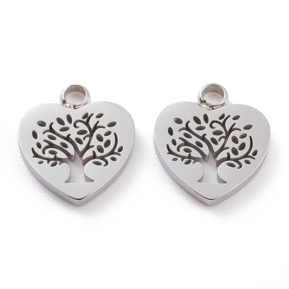 Heart-shaped pendant with a tree of life made of surgical steel