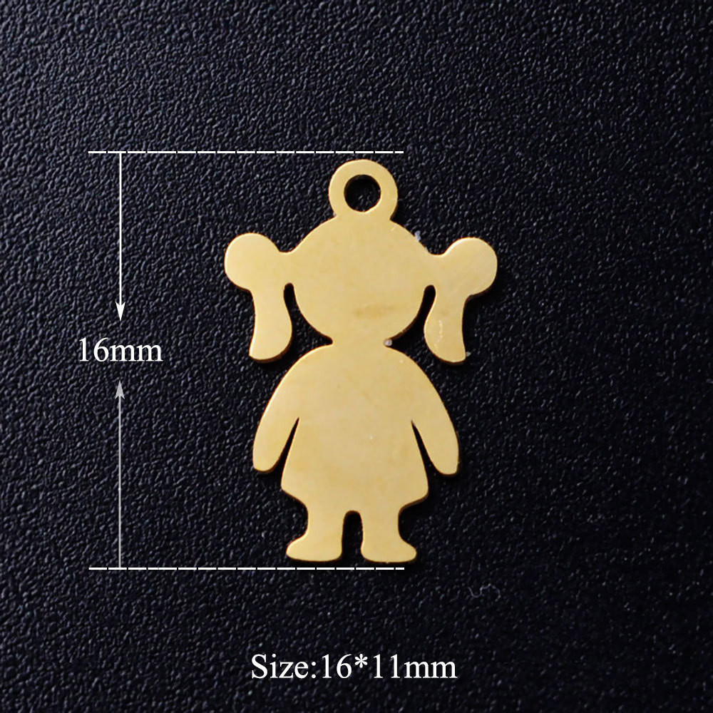 Pendant little girl with pigtails surgical steel two color variants