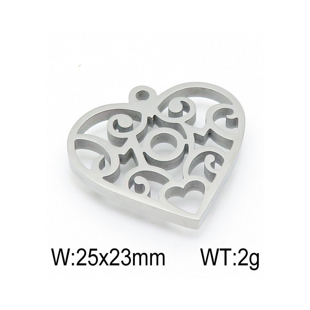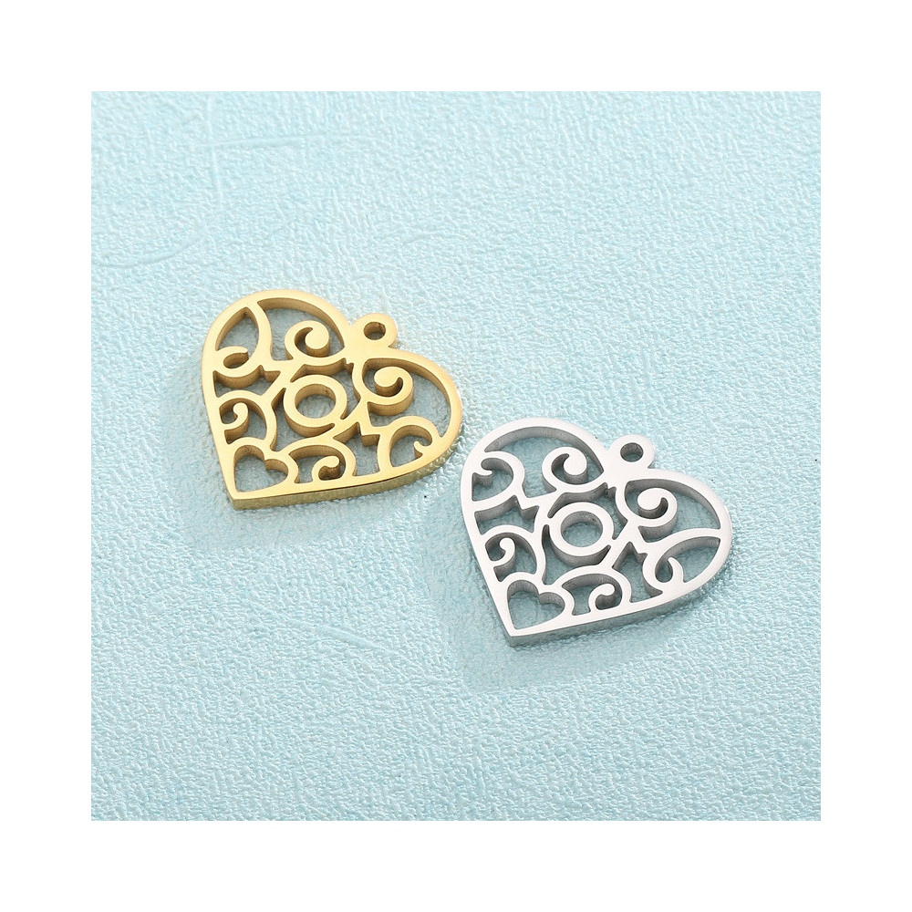 Heart pendant with ornaments, two color combinations, surgical steel