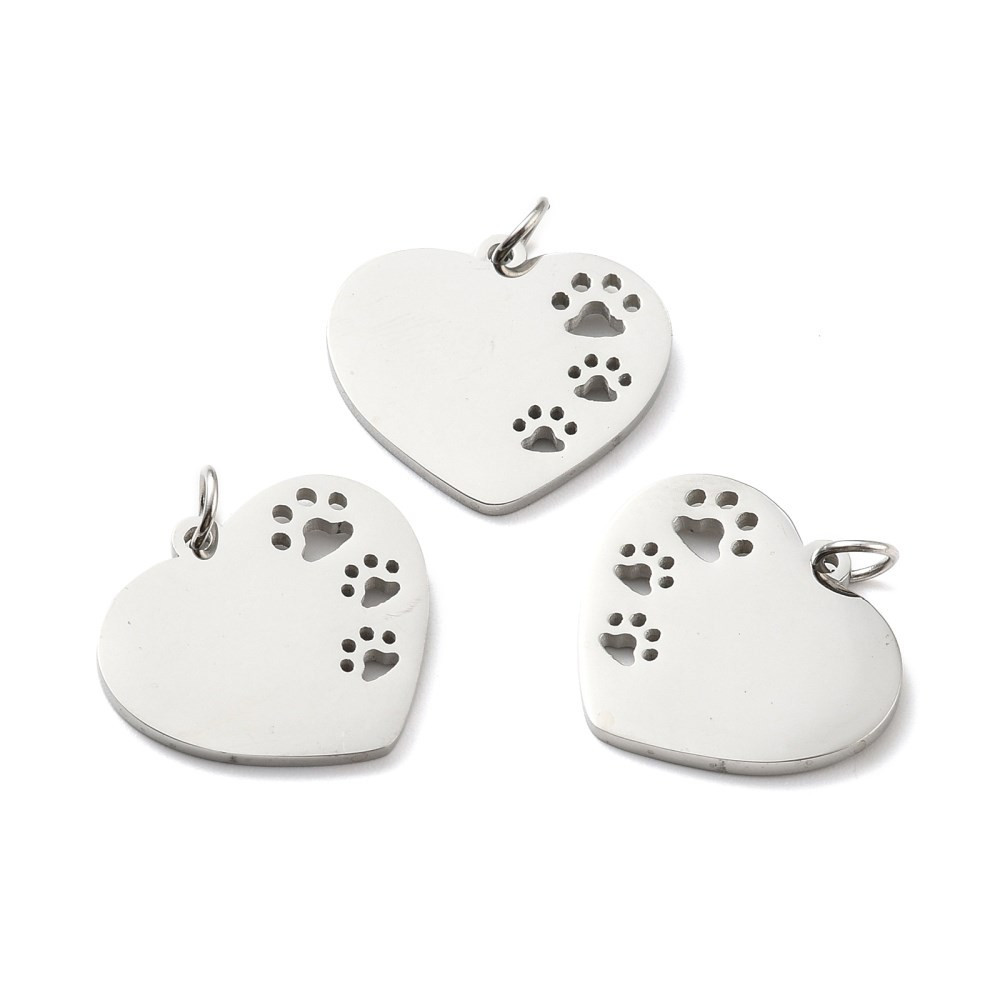 Surgical steel heart pendant with paws