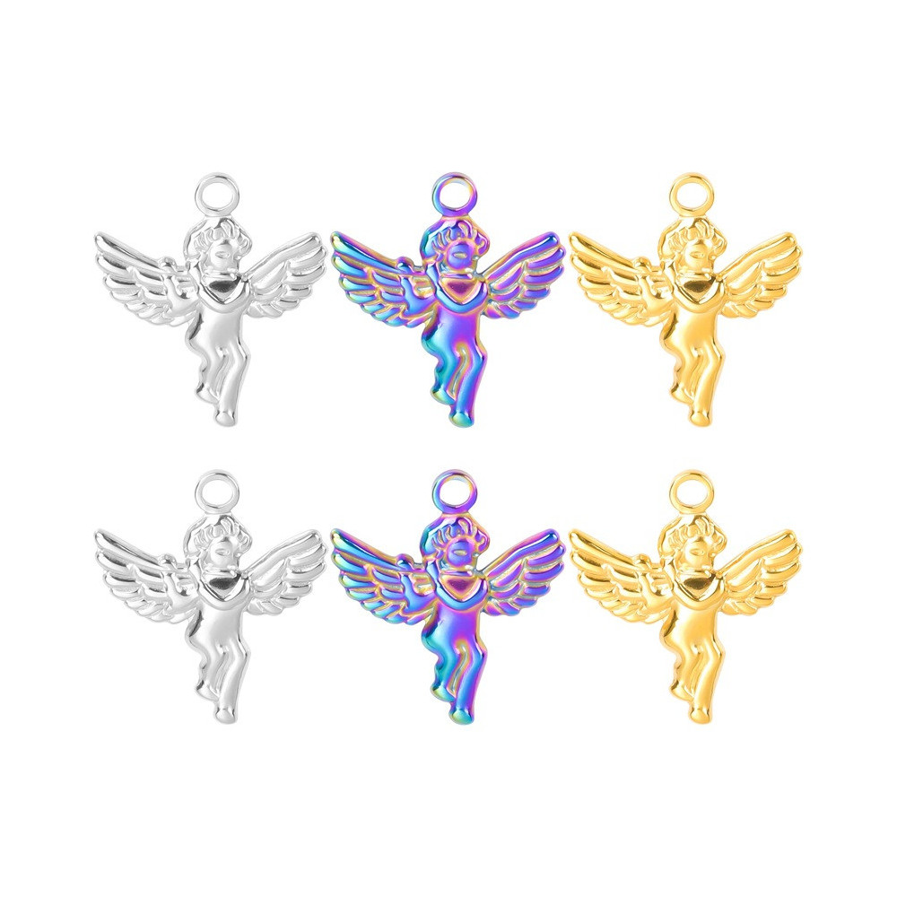 Angel pendant with a heart, surgical steel, 3 color variants