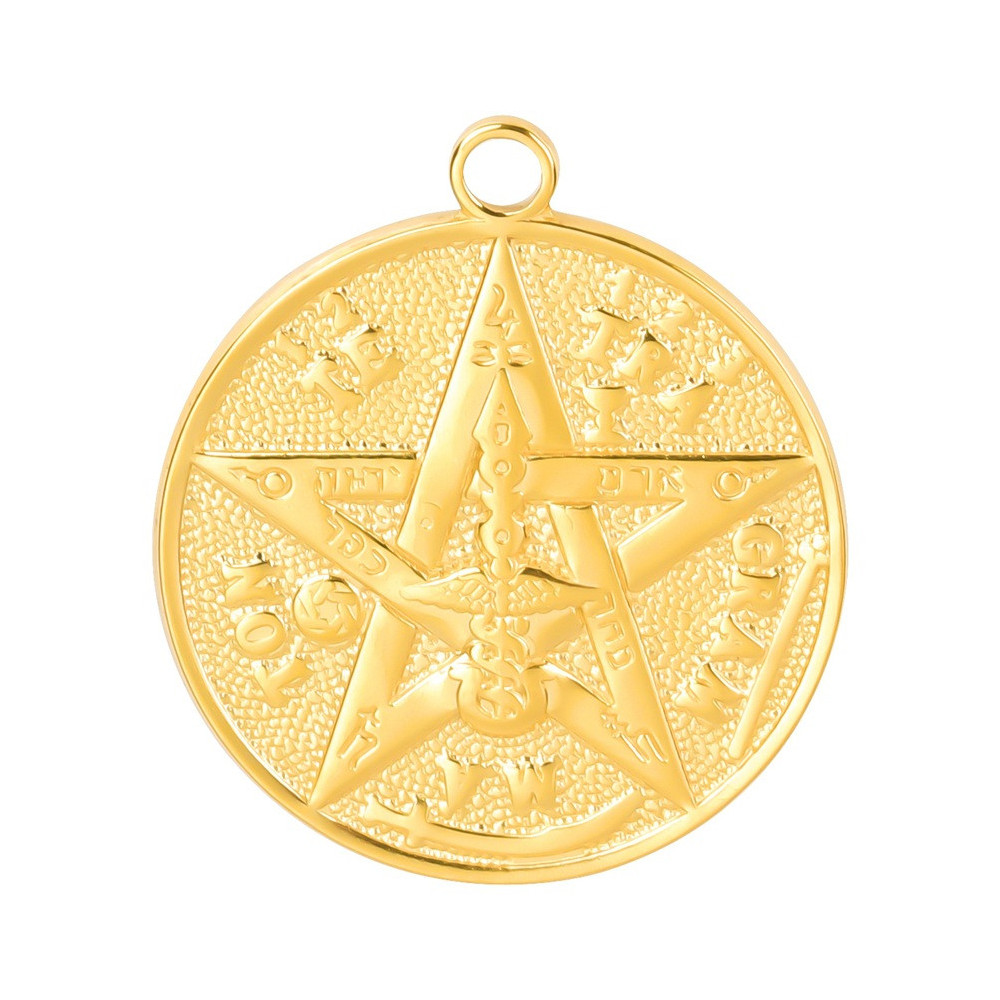 Pendant wheel with star and symbols surgical steel
