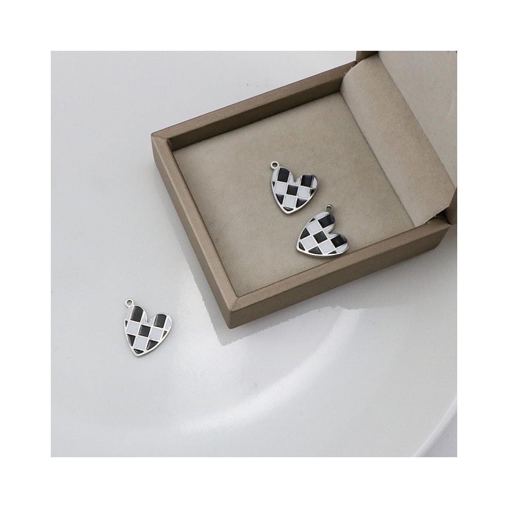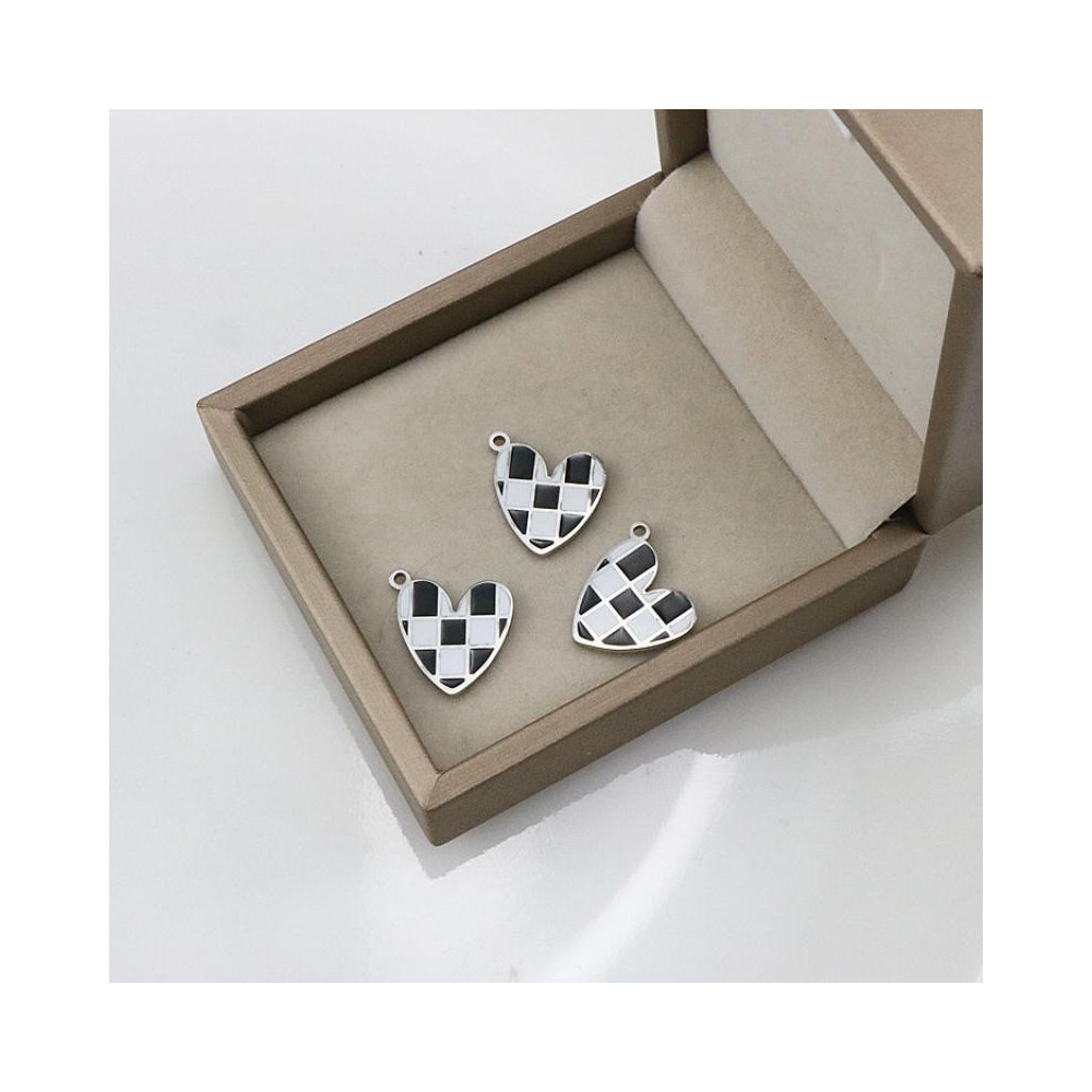 Heart pendant with black and white enamel, surgical steel