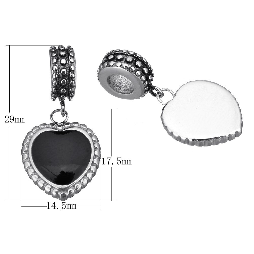 Heart pendant with black surgical steel stone