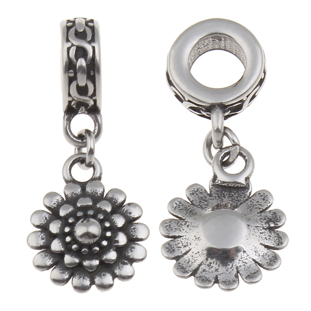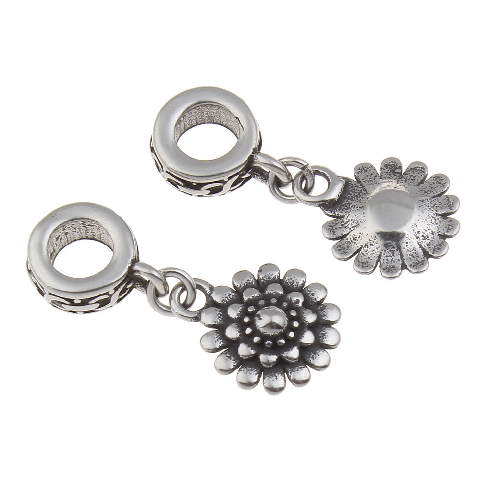 Pendant flower in antique silver patina of surgical steel