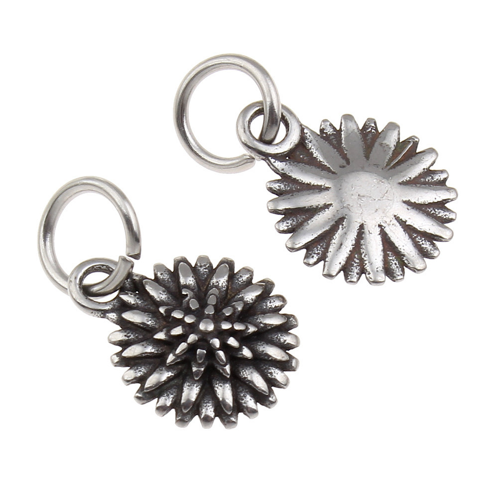Pendant flower in antique silver patina of surgical steel