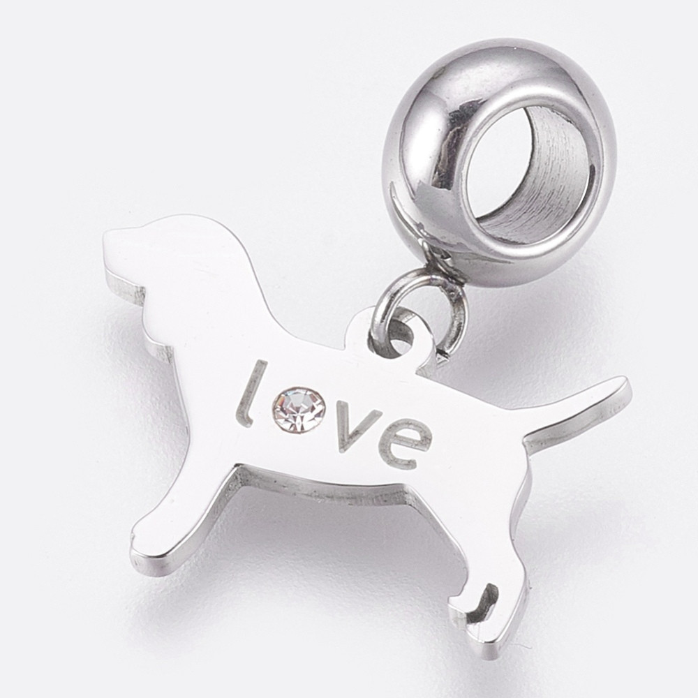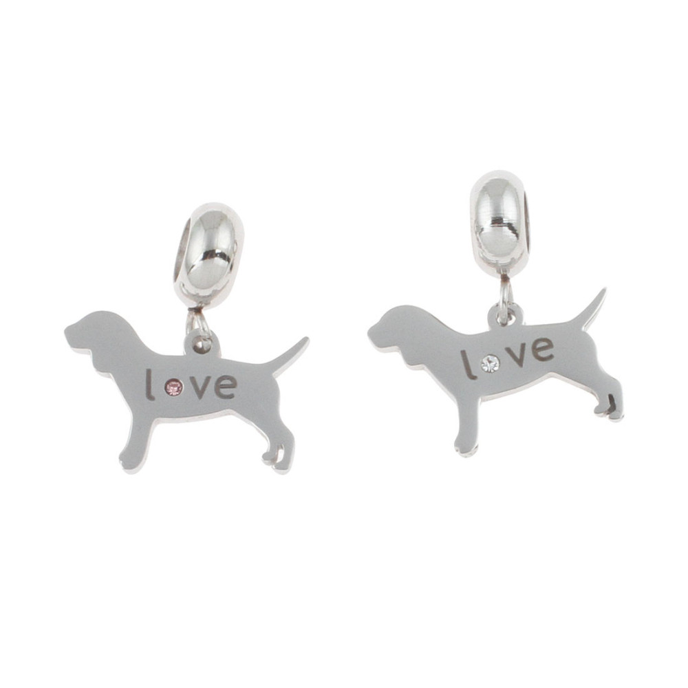 Dog pendant with the inscription Love and a crystal color crystal surgical steel