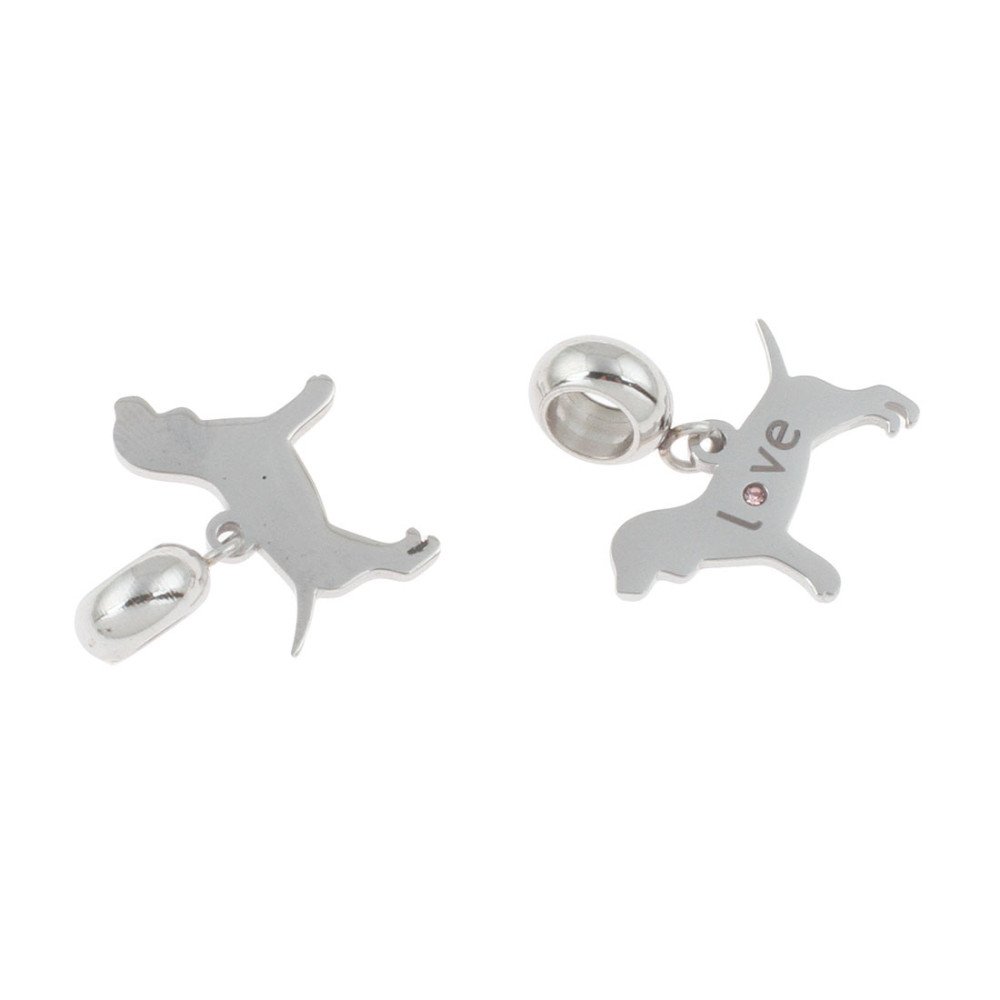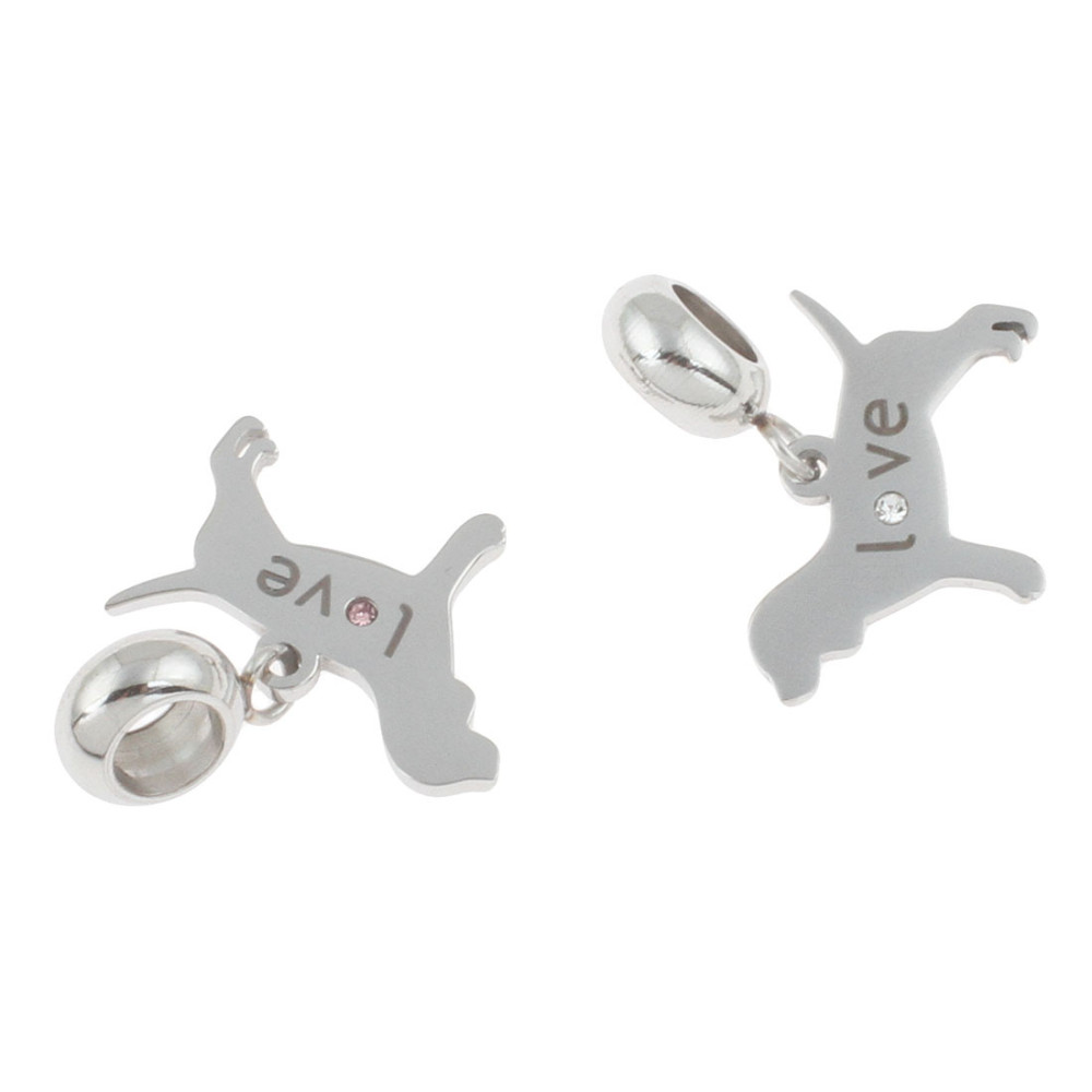 Pendant Doggy with Inscription Love and Chat Color Crystal Surgical Steel