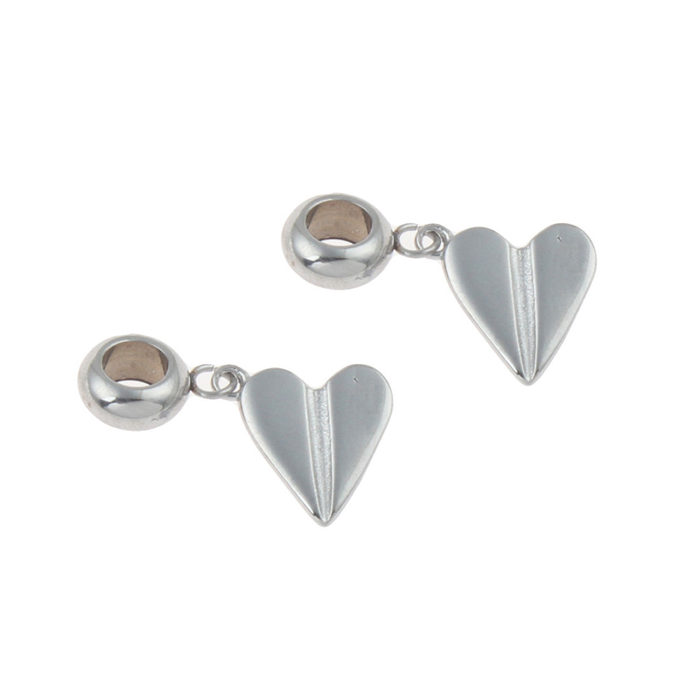 Heart bead with pink rhinestones and LOVE inscription made of surgical steel