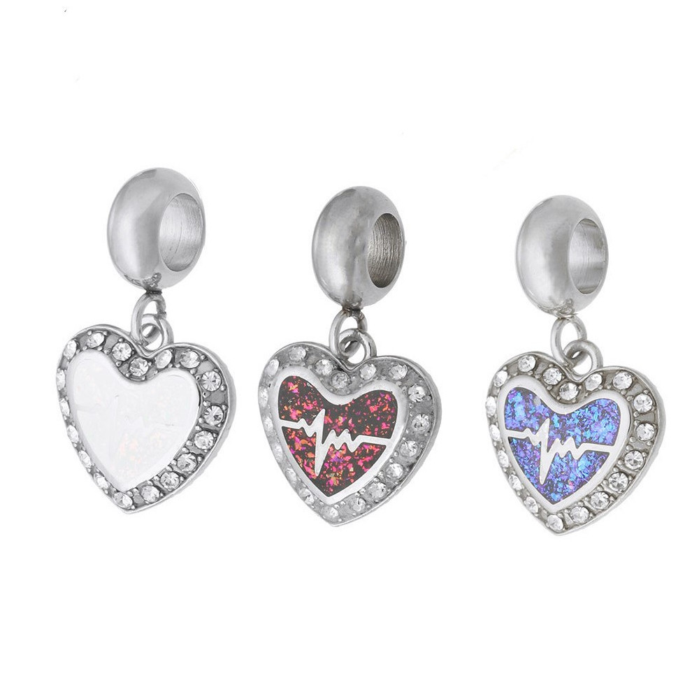 Heart bead with surgical steel chatons