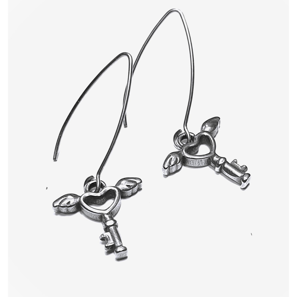Dangle earrings with an angel's key, surgical steel