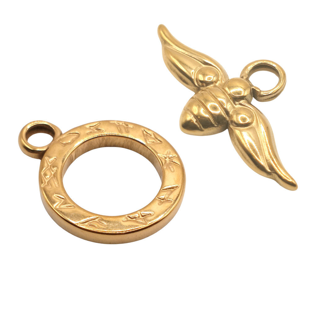 Ring smooth earring with horizontal or vertical eye surgical steel gold galvanization